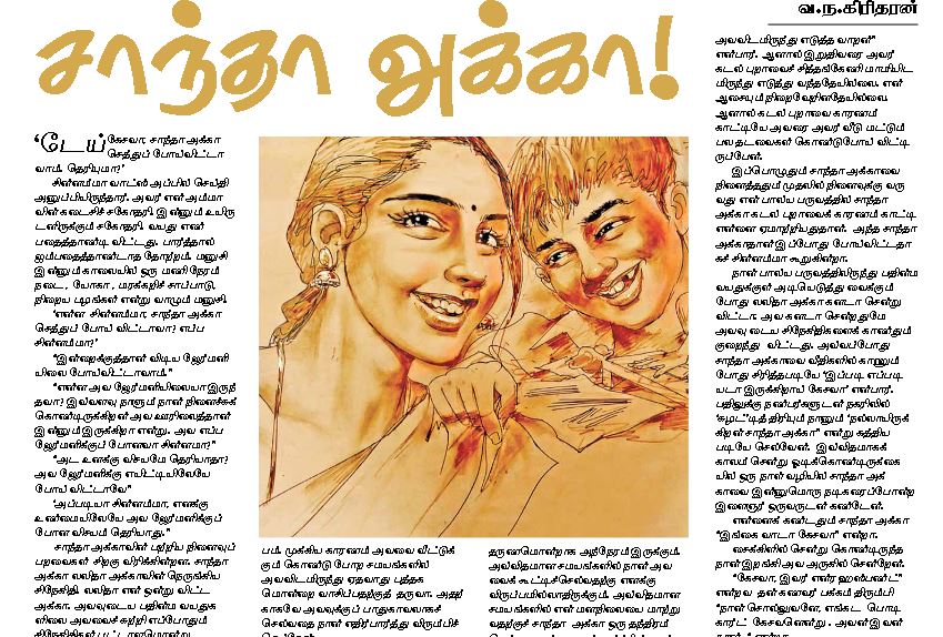 என்னைக் கண்டதும் சாந்தா அக்கா "இங்கை வாடா கேசவா" என்றா.