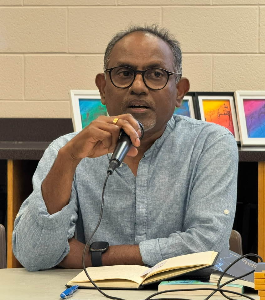 நிகழ்வின் இன்னுமொரு முக்கிய அம்சம். எழுநா இதழ்களின் வெளியீட்டுக்கு முக்கிய காரணகர்த்தாவான எழுத்தாளர்  'உரையாடல்' நடராஜா முரளிதரனுக்கு ஒரு மேசை வழங்கப்பட்டிருந்தது. எழுநா இதழ்களுடன் அவர் அமர்ந்திருந்தார்.  வழக்கமாக இவ்விதமான இலக்கிய நிகழ்வுகளில்  காலம் செல்வத்தின் வாழும் தமிழ் புத்தகக் கண்காட்சியும் இடம் பெறுவது வழக்கம்.  அவ்விதம் நடக்காததாலோ என்னவோ அவர் நிகழ்வின் முடிவில் பார்க்கிங் லொட்டில் நின்ற்படி நூல்களை விற்றுக்கொண்டிருந்தார். அண்மையில் காலநதி மூலம் என் கவனத்தைக் கவர்ந்த எழுத்தாளர் யுவன் சந்திரகேசரின் , எழுத்து வெளியீடாக வெளிவந்திருந்த 'வெளியேற்றம்' நாவலின் பிரதியொன்றினையும் கூடவே வாங்கிச் சென்றேன். இளங்கோவின் நூலை இன்னும் வாசிக்கவில்லை. அது பற்றி உரையாற்றியவர்கள்தம் உரைகள் காரணமாக அதனை விரைவில் வாசிக்கும் ஆர்வம் தூண்டி விடப்பட்டுள்ளது. வாசிப்பேன். கருத்துகளையும் பகிர்ந்துகொள்வேன்.