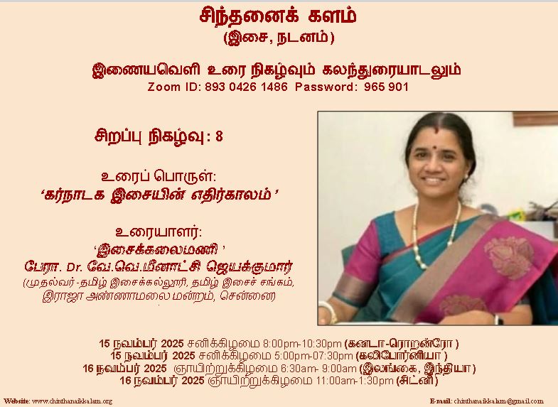 Dr. Kawsalya Subramaniam and Dr. Subramaniam Nagarasa Iyer invite you for a scheduled Zoom meeting in Chinthanai kalam(isai-Nadanam)