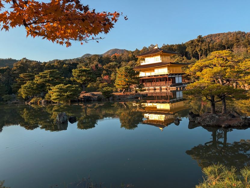 தங்கக் கோவில் உயரமான இடத்தில், ஒரு தடாகத்தில் பல தீவுகளாக பிரிந்திருக்க அமைந்திருந்தது அதைச் சுற்றி யப்பானிய பூங்காவில் அமைந்திருந்தது. அந்த இடத்தை சுற்றிப் பார்த்த போது ஜப்பானியர்கள் செய்கை எதிலும் ஒரு நிறைவு தெரிந்தது .