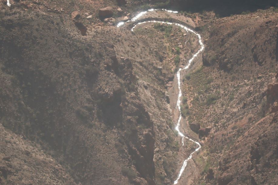 அதிசயமான நில அமைப்பு, பல நிறங்களிலான கற்பாறைகளின் மேல் பாய்ந்து, தழுவி, உராய்ந்து தேர்ந்த சிற்பியைப் போல ஆறு மில்லியன் ஆண்டுகள் அமைதியாக செதுக்கி உருவாக்கிய கொலராடோ நதி, இப்போது சிறு வயதில் நான் கட்டியிருந்த வெள்ளி அரை நார்க்கொடி போல் ஹெலிகாப்டரில் இருந்து பார்க்க தெளிவாக தெரிந்தது.